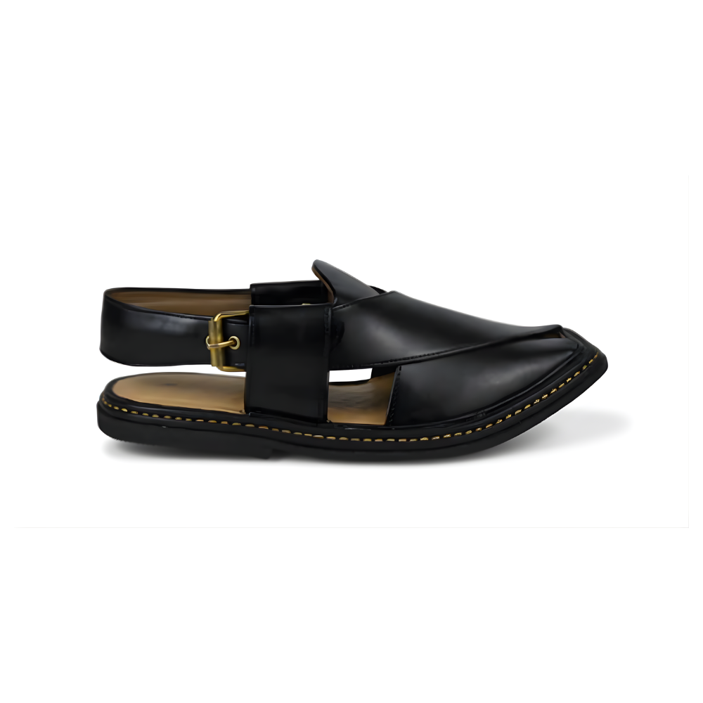 A refined representation of classic footwear, the Traditional Round-Toe Peshawari Chappal blends comfort, tradition, and durability. Featuring a rounded toe shape and minimalistic strap design, it offers a timeless appeal suited for daily wear. Handcrafted with precision by skilled artisans, it includes a cushioned sole and an adjustable backstrap for all-day comfort and secure fit. This versatile piece is ideal for those seeking a clean, understated look that aligns with cultural heritage and practical style.