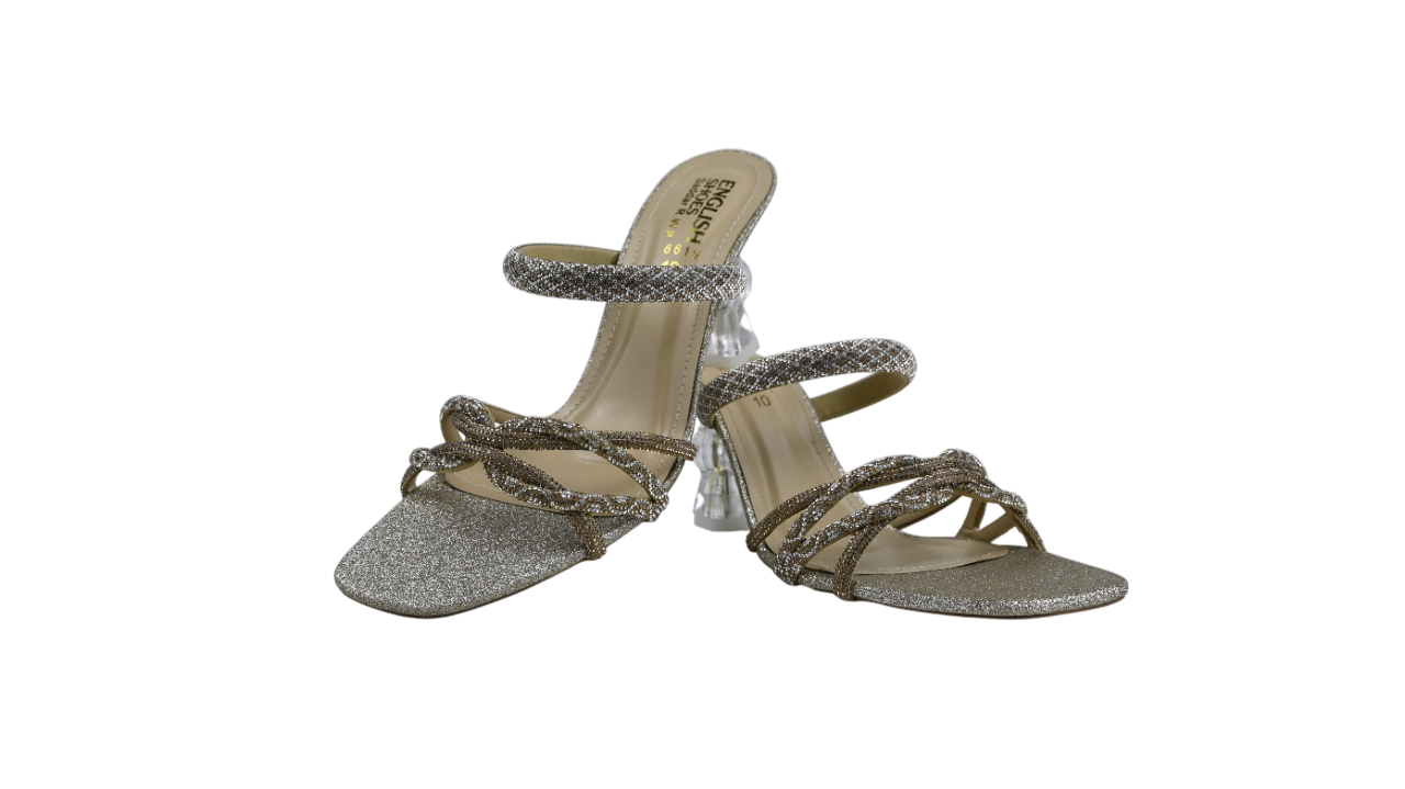 Step into glamour with these dazzling strappy heels designed for parties, weddings, and festive occasions. Featuring a glittery silver finish, intertwined straps, and a supportive ankle band, these heels bring the perfect blend of style and comfort. The transparent block heel adds a chic touch while ensuring stability for long hours of wear.
